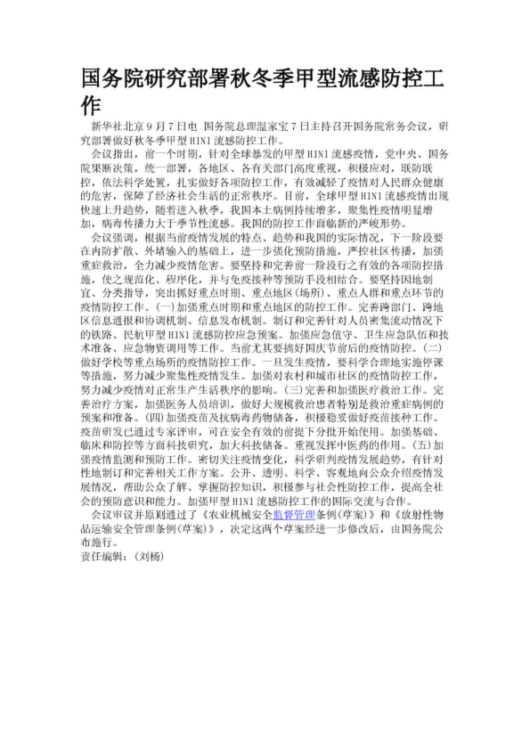 國務院研究部署秋冬季甲型流感防控工作