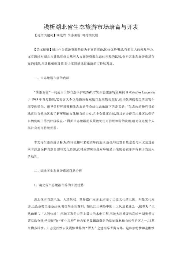 淺析湖北省生態旅游市場培育與開發(27.50KB)