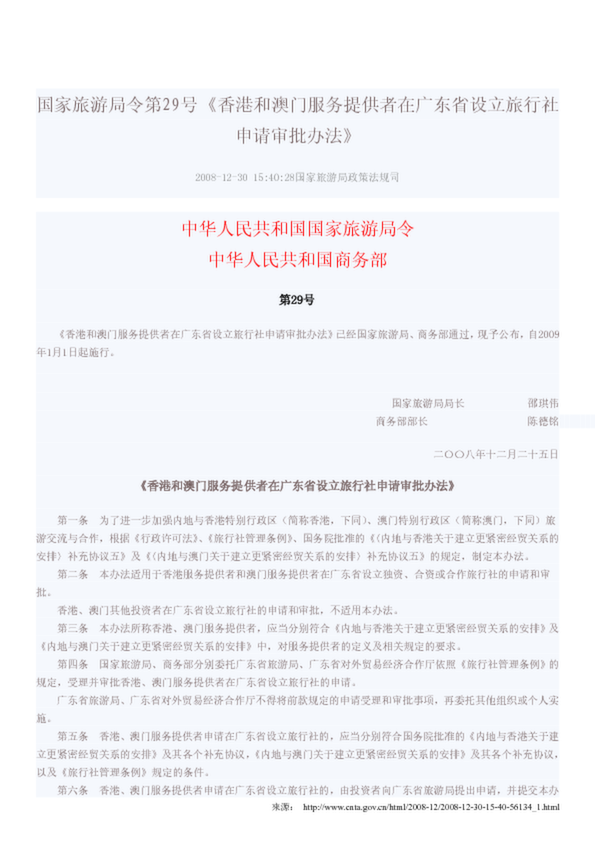 香港和澳門服務提供者在廣東省設立旅行社申請審批辦法(17.00KB)