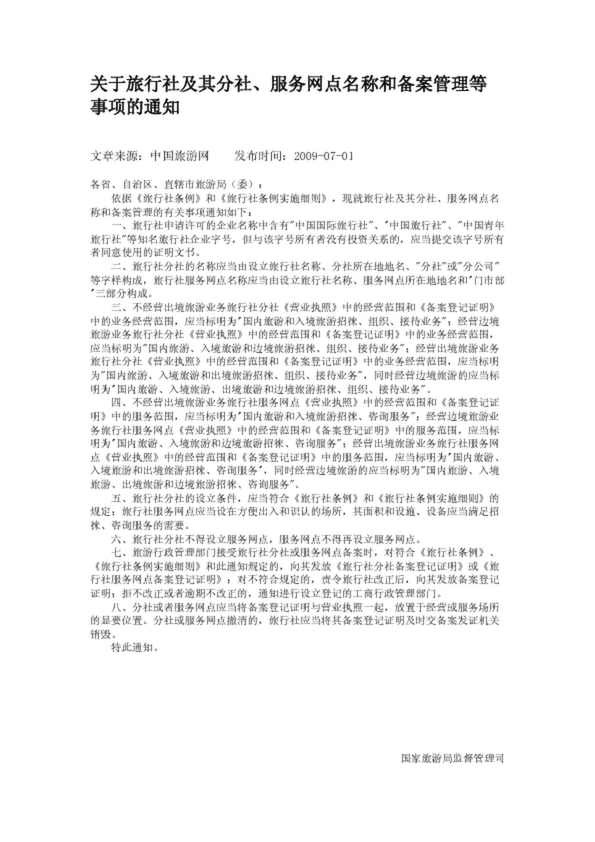 關于旅行社及其分社、服務網點名稱和備案管理等事項的通知