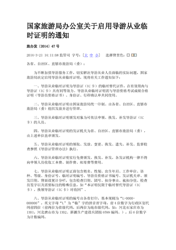 國家旅游局辦公室關于啟用導游從業臨時證明的通知(3.89KB)