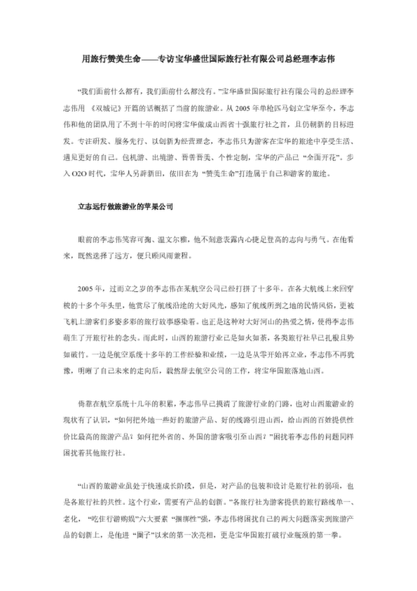 用旅行贊美生命——專訪寶華盛世國際旅行社有限公司總經理李志偉(17.00KB)