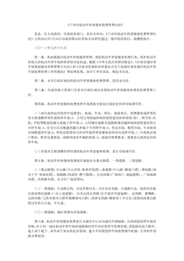 《蘭州市機動車停放服務收費管理辦法》