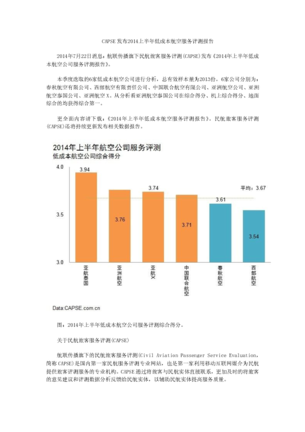 CAPSE發布2014上半年低成本航空服務評測報告(71.00KB)