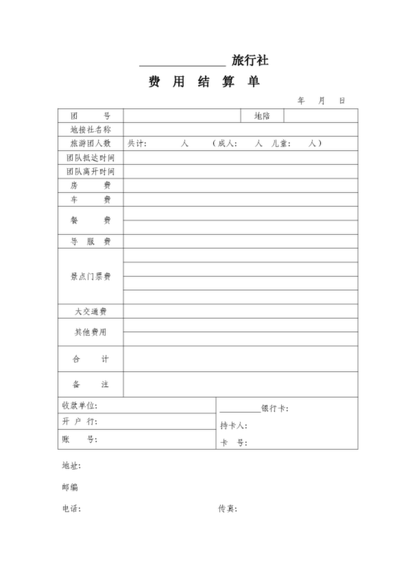 地接社費用結算單