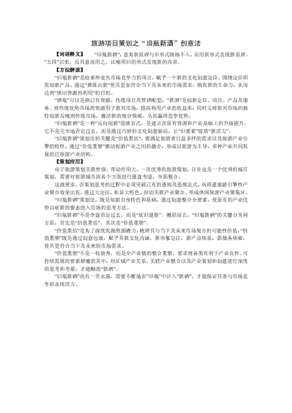 旅游項目策劃之“舊瓶新酒”創意法(12.50KB)