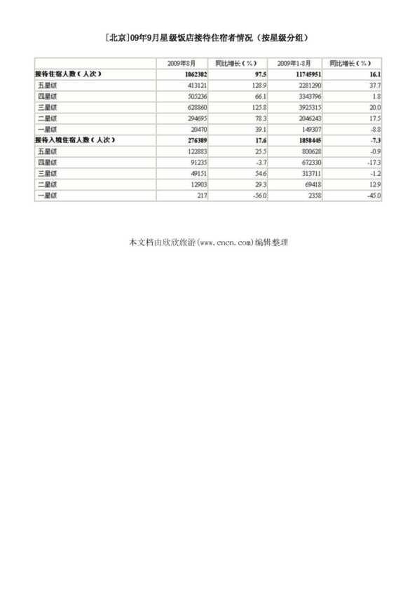 [北京]09年9月星級飯店接待住宿者情況(按星級分組)