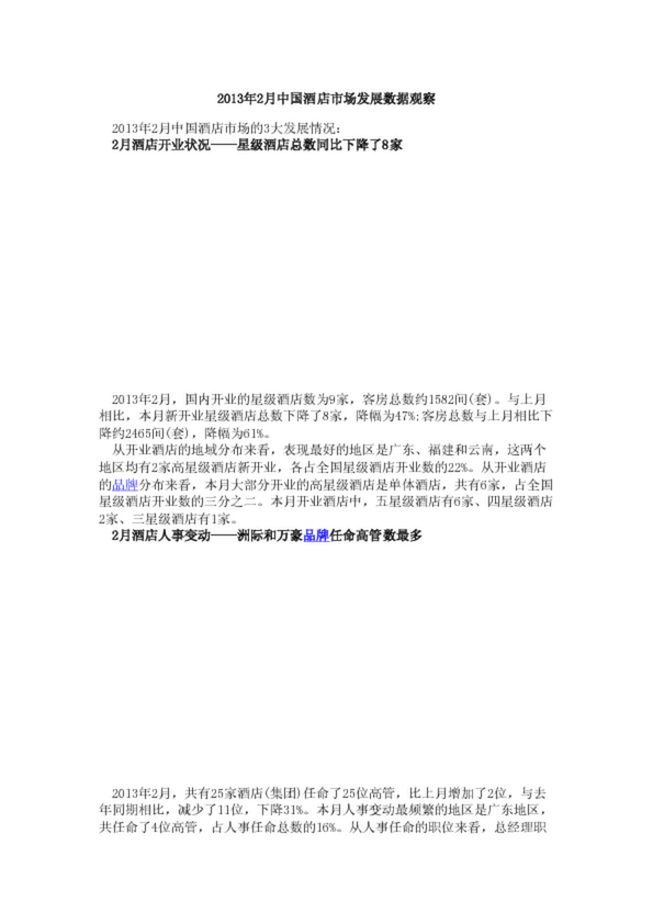 2013年2月中國酒店市場發展數據觀察