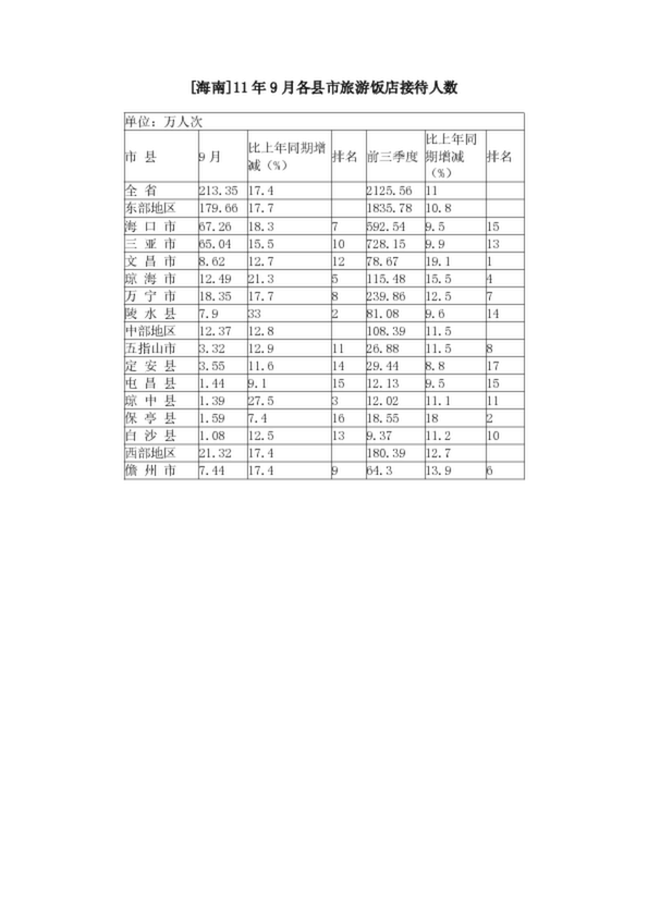 [湖州]2010年10月星級飯店平均房價和出租率
