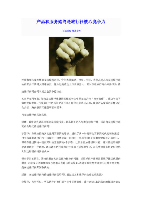 產品和服務始終是旅行社的核心競爭力(30.00KB)