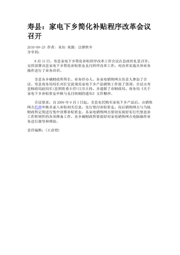 壽縣:家電下鄉簡化補貼程序改革會議召開