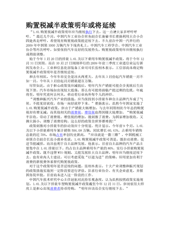 購置稅減半政策明年或將延續(20.40KB)