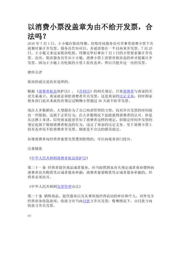 以消費小票沒蓋章為由不給開發票,合法嗎?(21.41KB)
